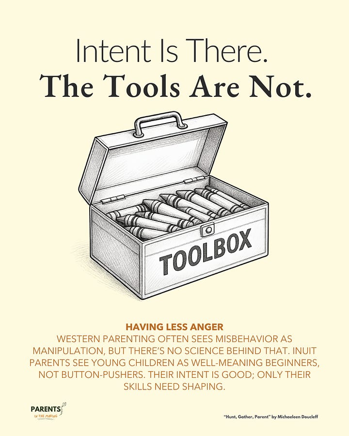 Inuit parents see children as rookie citizens, usually kind at heart, still learning how to act. Motives are assumed good; only the execution needs coaching.
